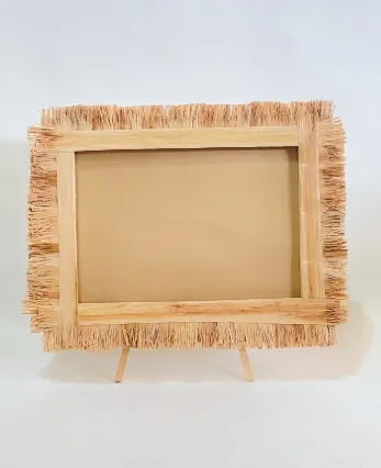月桃を用いて制作しています。亜熱帯をイメージした、ワイルドな絵や写真などに適しているフレーム