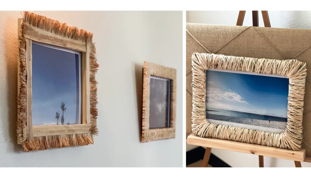 月桃とアダンを用いて制作しています。「鳥の巣」のように絵や写真などをあたたかく包み込むようなフレーム