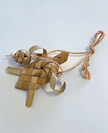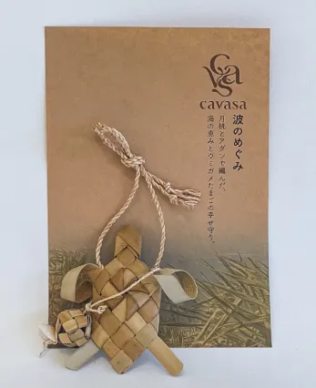 「幸せを運ぶ海の使い」として親しまれるウミガメ。そのたまごは、新しい命と希望の象徴です。月桃の茎とアダンの葉で編まれたお守りには、マース(塩)が包まれ、子ウミガメが海へ向かうように、大切な一歩をそっと後押ししてくれる願いが込められています。